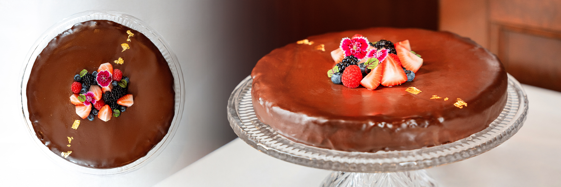 Gluten Free · Chocolate Flourless Cake, Dark Chocolate Mirror Glaze