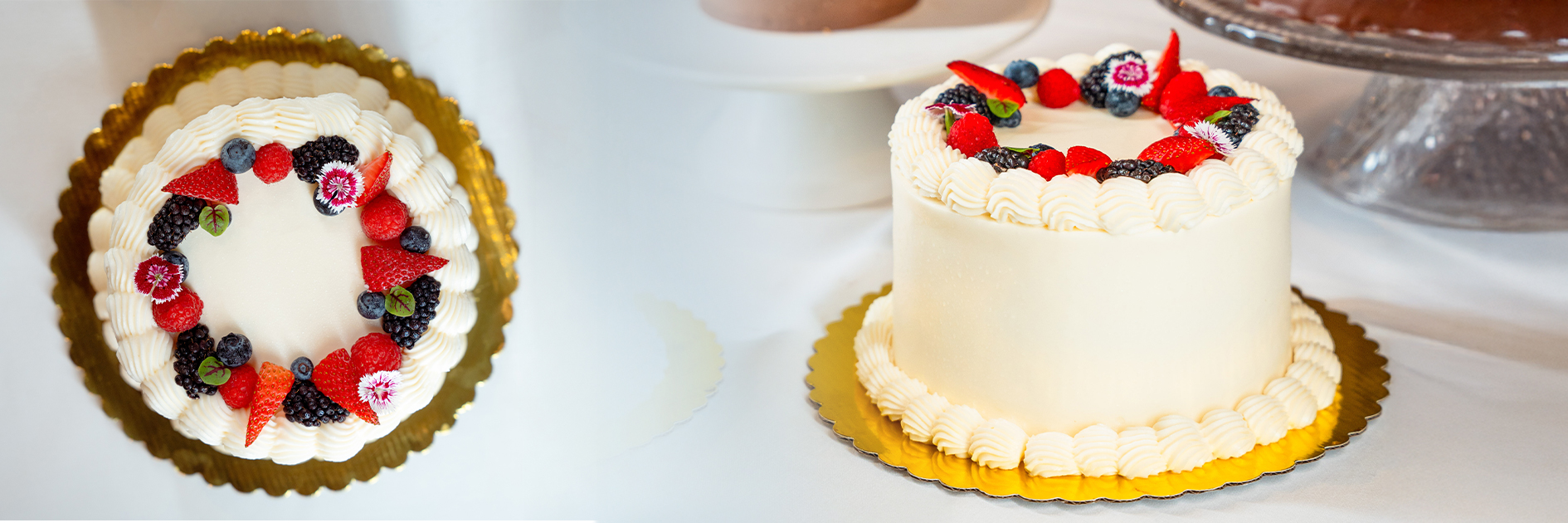 Available Sizes: 4″ Round, 6″ Round, 2-Tier Round